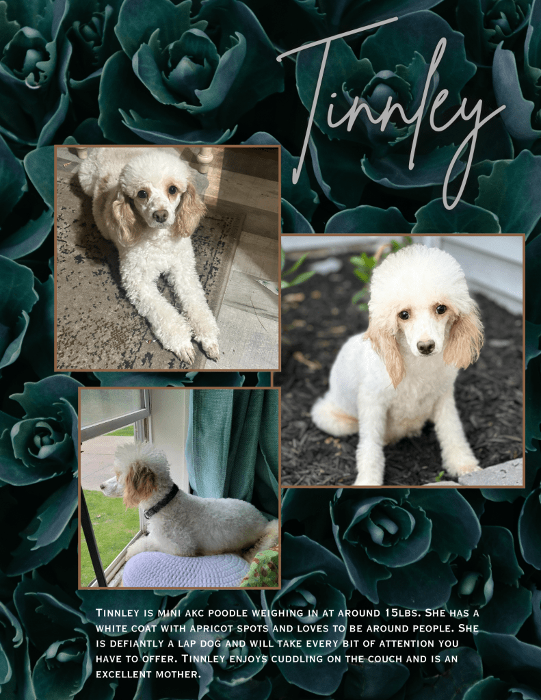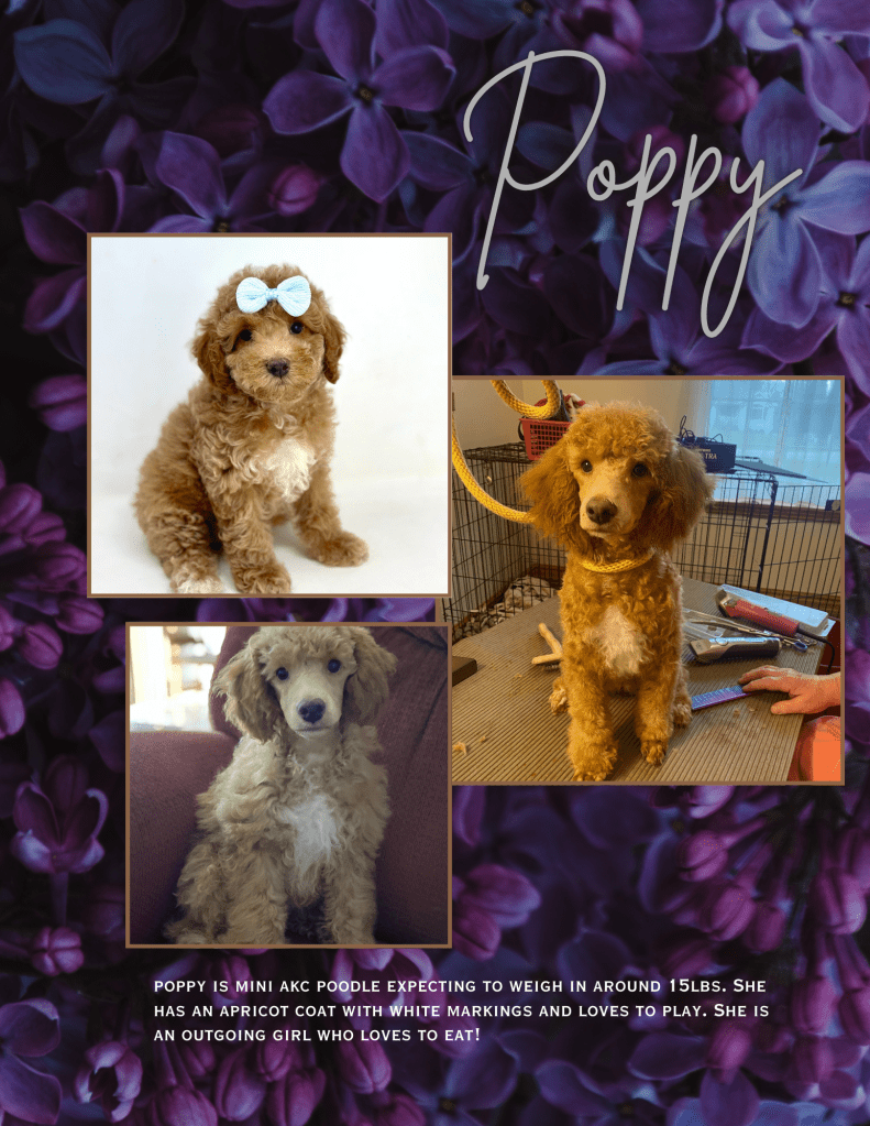 Zion is an AKC MINI POODLE – 15lbs. He is an absolutely beautiful boy with amazing genetics!